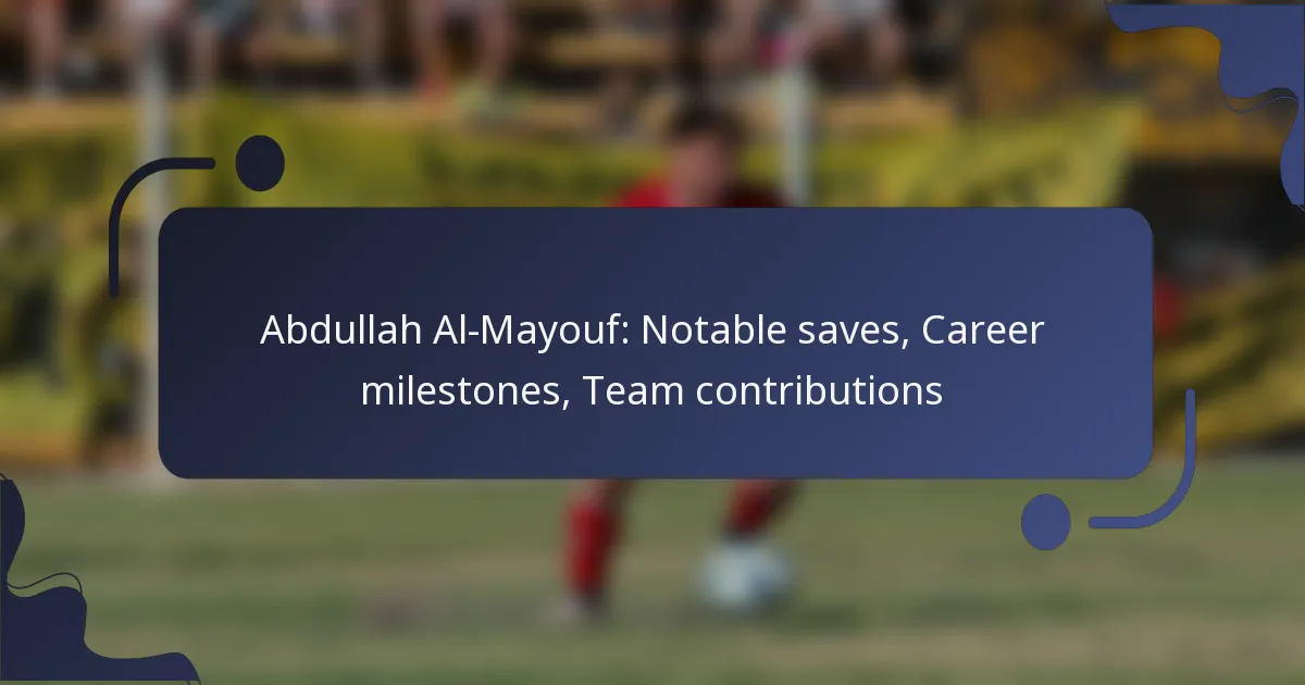 Abdullah Al-Mayouf: Notable saves, Career milestones, Team contributions